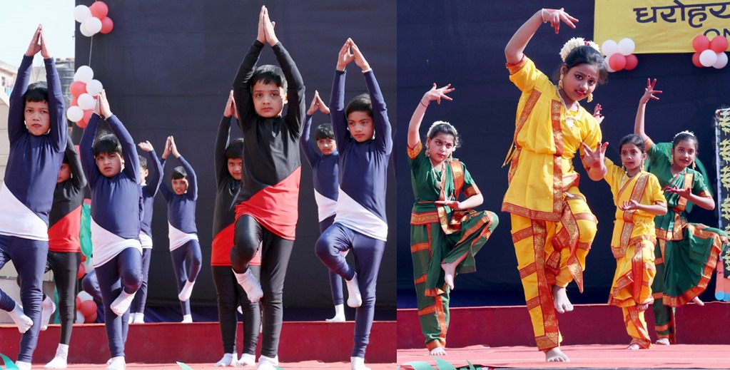 कार्यक्रम की प्रथम प्रस्तुति ‘सरस्वती वंदना‘ में लय-ताल पर नृत्य करते बाल कलाकारों ने माँ सरस्वती की सुन्दर झांकी प्रस्तुत की। भारतीय संस्कृत के अभिन्न अंग योग के कठिन आसनो को सहजता के साथ करते हुए बच्चों ने दर्शकों को अपनी ओर आकर्षित किया।