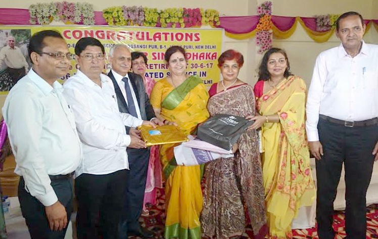 राजकीय सह-शिक्षा सीनियर सेकेंडरी स्कूल पोसंगीपुर, बी-1, जनकपुरी के प्रधानाचार्य श्री ओ. एस ढाका का सेवानिवृत्ति पर आयोजित विदाई समारोह में भव्य अभिनंदन किया।