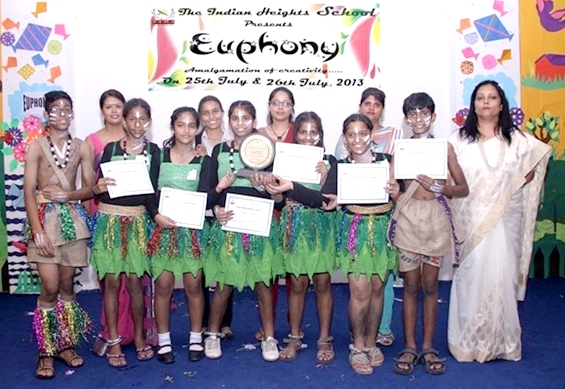 The Indian Heights School, sector 23, Dwarka hoisted its fourth Inter-school Fest “Euphony – 2013 an amalgamation of creativity” on July 25th and July 26th 2013. The two day event garnered a massive participation and over 35 schools and more than 700 students participated in this event. Euphony 2013 as always provided a platform to all the participant schools to showcase their rich pool of talent in the extremely diverse fields of dance and song , culinary skills, oratory skills or even enacting a jingle or a personality. Where Day one witnessed an energetic performances of all the participants that left everyone spellbound, Day two enthralled the audience with their exemplary performances. All the participant schools successfully overcame challenges and displayed confidence and unflappability in their presentations. All the performances were highly praise and applauded by the judges.