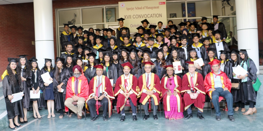 Apeejay School of Management, New Delhi organized 17th Convocation ceremony on 11th October, 2015 at its Dwarka campus. On this occasion, 149 graduating students received Post Graduate Diploma in Management. Five students were awared medals for overall outstanding academic performance.