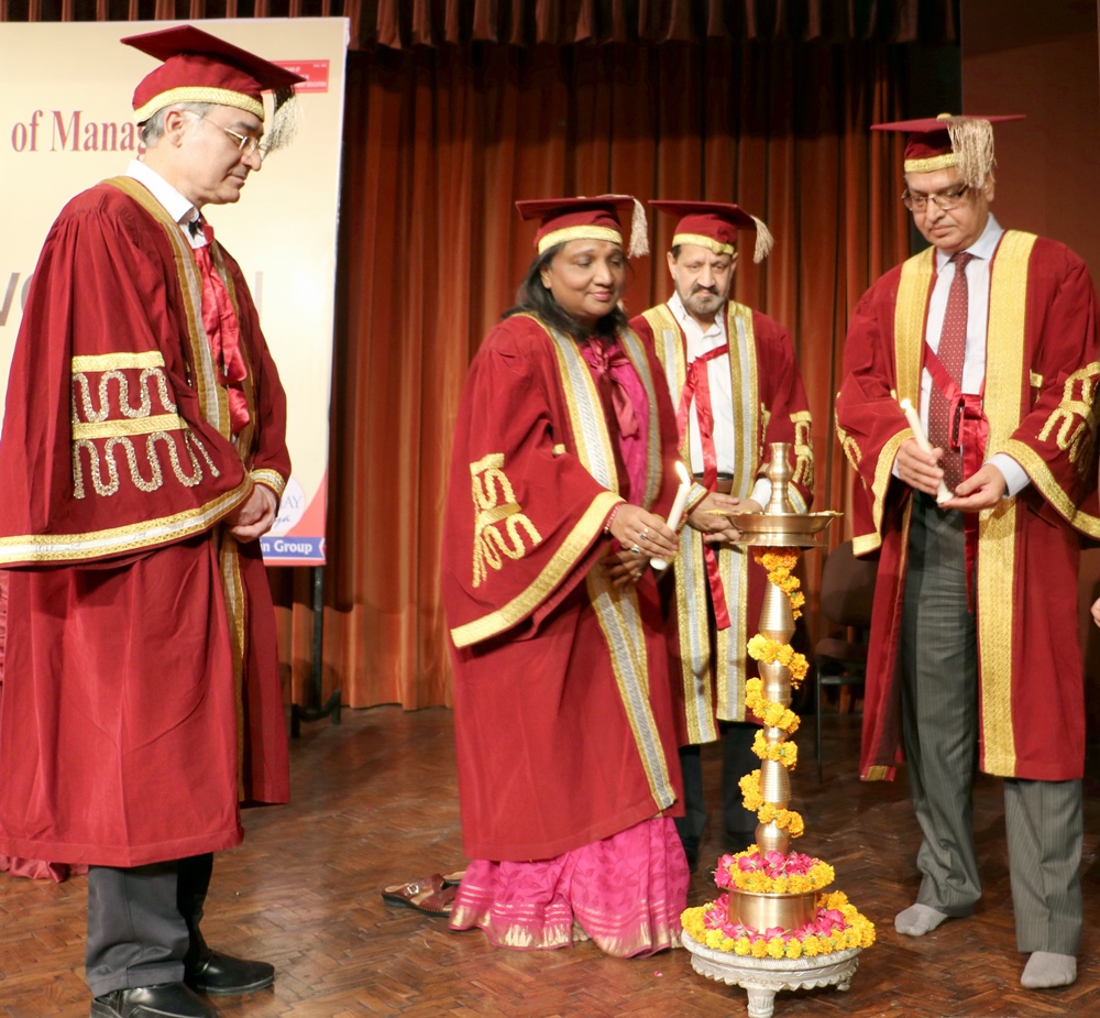 Mrs. Sushma Pual Berlia, President, Apeejay Education Society, Co-Founder and Chancellor of Apeejay Stya University, presided over the function and conferred the diplomas. Mrs. Berlia, during her address shared her views about the changing business scenario and advised the students to believe in themselves. She also talked about the value of being disciplined, dedicated, determined and giving back to the society Prof. (Dr.)Alok Saklani, Director, presented the report on the institution’s achievements in the past academic year. Mrs. Berlia also administrated the oath of ethical conduct to the students. A galaxy of scholars, members of the Governing Body, Academic Advisory Council, graduating students and their parents, attended the convocation.