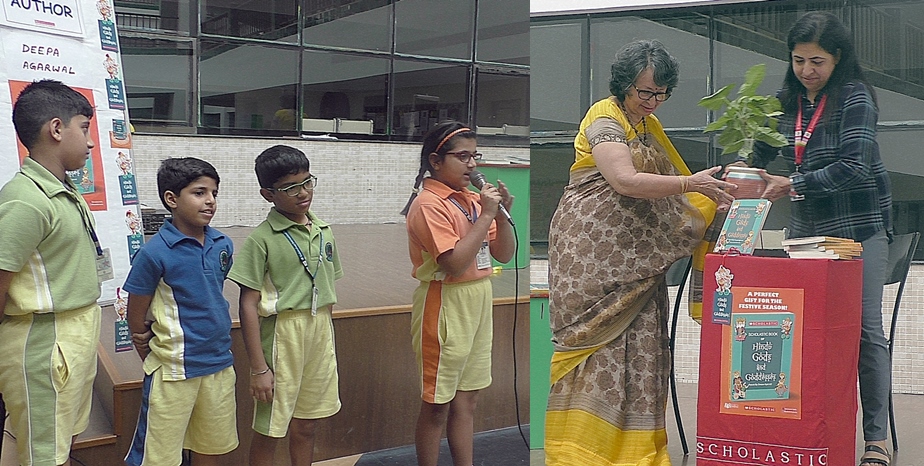 On her visit to Sri VIS Ms Deepa Agarwal read out interesting extracts from her new launch ‘Hindu Gods and Goddesses’ to the students of Class – IV. The students were overjoyed listening to her and each one of them wanted to read more of the book. She was felicitated by the Primary Wing Headmistress Ms Shama Kapoor for giving us an informative session on her new book. Sri VIS family wishes Ms Deepa Agarwal lots of luck for her future endeavours.