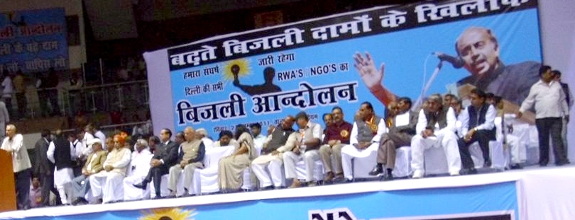 ‘Bijli Aandolan’ on tarrif hike held on Sunday, the 27th Nov. 2011 at Talkatora Stadium. Due to Sunday & wintry morning consumers started pouring in at a slow pace in the early morning. However after 10-15AM it was huge flow of consumers & whole stadium was not only got full but thousands even agreed to sit on the carpets. Even this carpeted /ground space in the stadium got filled up in no time & many hundreds had to watch & listen to the program on screens & speakers outside the stadium.