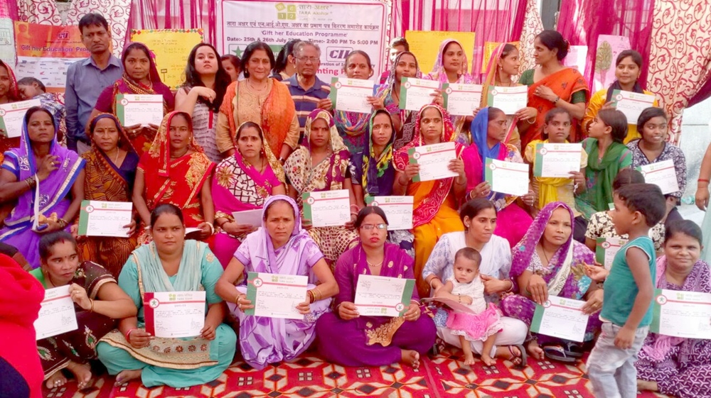 दिनांक 25 एवं 26 जुलाई 2017 को तारा अक्षर +कार्यक्रम के अंतर्गत साक्षर हो चुकी 112_महिलाओं को सेक्टर-16 बी साइट 1, इ- डव्लू एस क्वाटर परिसर ,बस्ती विकास केंद्र द्वारका, न्यू दिल्ली- एवं न्यू संजय अमर कॉलोनी, विश्वास नगर, शाहदरा, दिल्ली में तारा अक्षर के प्रमाण पत्र वितरितकिए गए।इस कार्यक्रम के मुख्य अतिथि श्री.बी.बी एल. राव पूर्व निदेशक योजना विभाग भारत सरकार एवं श्रीमती जया सीनियर टीचर जिसेस एंड मैरी,स्कूल दिल्ली ने नवसाक्षर महिलाओ की सराहना करते हुए कहा की अब ये महिलाये तारा अक्षर प्रोग्राम के द्वारा अंगूठे से कलम तक का सफर तय कर शिक्षित होने के बाद शिक्षा का उपयोग जीवन में कर पायेगी.i इस कार्यक्रम के विशिष्ट अतिथिओ में डॉ महेंद्र सेठी (एनआईयूए), श्री राजदत गहलोत (निगम पार्सद ककरोला श्री मति अंजू कमलकांत (निगम पार्सद इ17 विश्वासनगर श्रीमती भारती एवं श्रीमति लक्ष्मी मिश्रा आदि ने कार्यक्रम की प्रशंसा करते हुए महिलाओ को शिक्षा पाने को जरुरी बतायाi