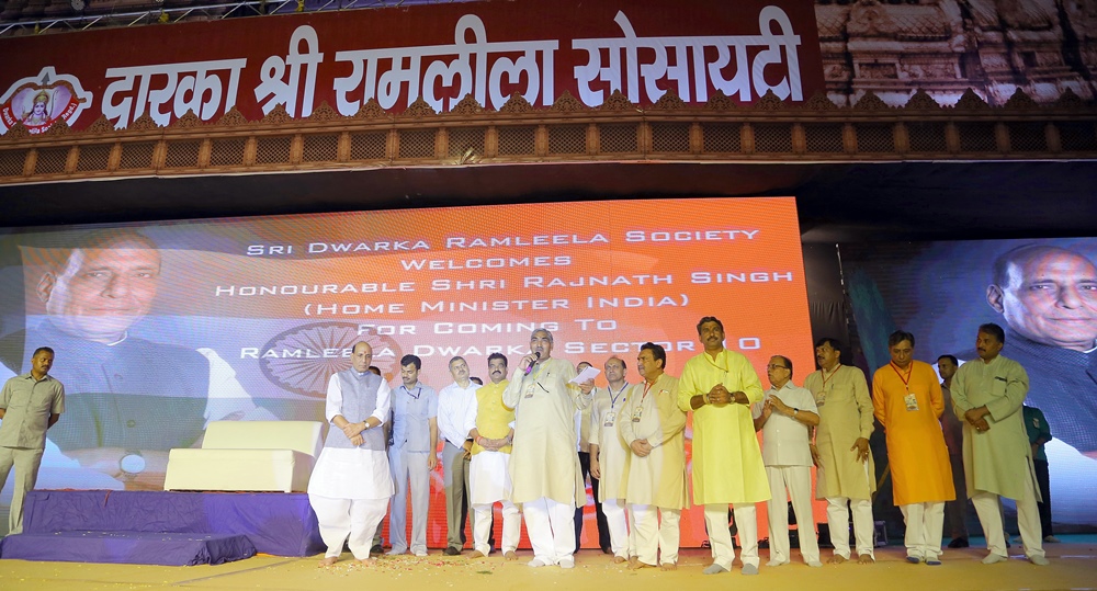 द्वारका श्री रामलीला सोसायटी के सरंक्षक के नेत्तृव में रामलीला ग्राउंड, सेक्टर-10 द्वारका में आयोजित भव्य रामलीला में बतौर मुख्यातिथि राजनाथ सिंह गृह मंत्री भारत सरकार ने अपने संबोधन में कहा कि हमें भगवान श्री राम के आदर्शों का पालन करना चाहिए. जिससे अच्छे समाज एवं स्वच्छ नैतिक मूल्यों का निर्माण होता है.