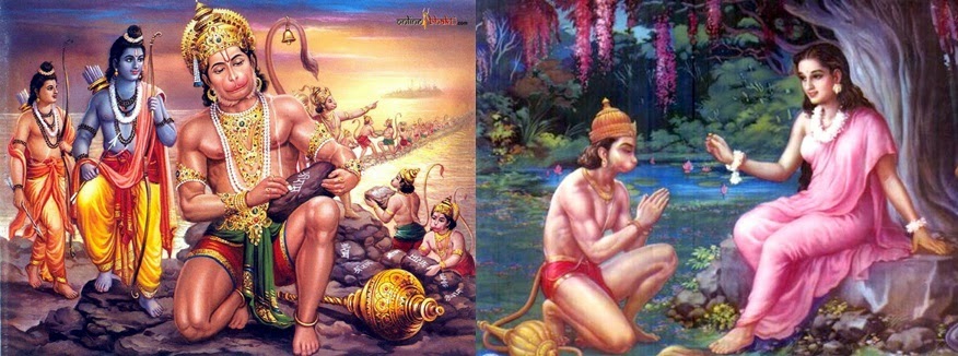 ऐसे वर्णातीत लंका में हनुमान जी की मित्रता विभीषण से होती है , वे हनुमान जी को माता सीता का पता बताते हैं। अशोक वाटिका में पहुँच कर वे देखते हैं की कपटी रावण सीता माता को अपनी पटरानी बनाने का प्रलोभन दते हुए साम -दंड-भेद नीति से उन्हें आतंकित कर रहा है.