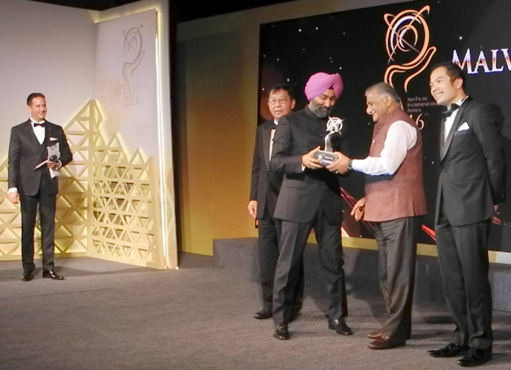 फोर्टिस हेल्थकेयर लिमिटेड के कार्यकारी चेयरमैन श्री मलविंदर मोहन सिंह को दिल्ली में हुए एषिया पैसिफिक आॅन्ट्रप्रेन्योरषिप अवाॅड्र्स समारोह में राज्य मंत्री वी. के. सिंह ने ट्राॅफी प्रदान की।