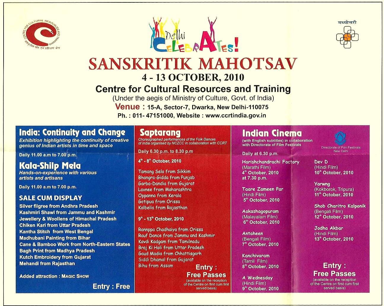 Delhi Celebrates SANSKRITIK MAHOTSAV at CCRT, Sector-7, Dwarka