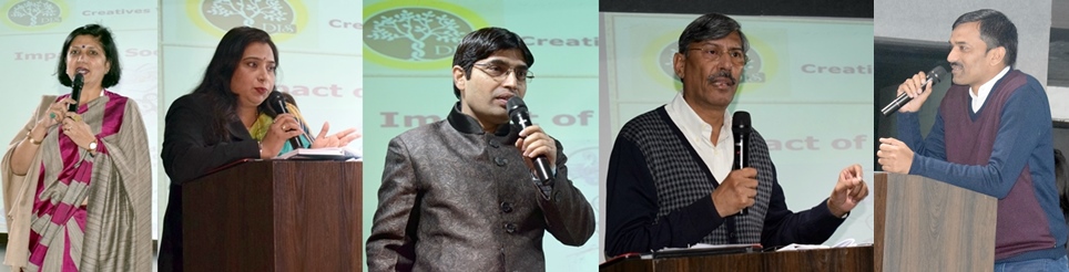 “सोशल मीडिया का दैनिक जीवन में प्रभाव” विषय पर सबसे पहले मेजबान स्कूल की 9वीं कक्षा की छात्रा श्रुति ने अपने विचार प्रकट किए. उसके बाद प्रधानाचार्या रशिम मलिक ने भी सोशल मीडिया के लाभ एवं दुष्परिणाम पर अनेक उदहारण पेश करते हुए अपने विचार रखे. सुश्री मलिक ने अपने अनुभवों के आधार पर इन नवीनतम टेक्नोलॉजी को अपनाते हुए अपने स्कूली बच्चों एवं स्टाफ को स्कूली गतिविधियों से हर पल अवगत रहने के उद्देश्य से व्हाट्स एप्प ग्रुप एवं फेसबुक पेज बना रखे हैं जिसके माध्यम से अभिभावक भी अपने बच्चों एवं स्कूली कार्यक्रम एवं उपलब्धियों से रूबरू बने रहते हैं. उन्होने सोशल मीडिया पर चल रही आसमजिक गतिविधियों पर भी चिंता व्यक्त की।