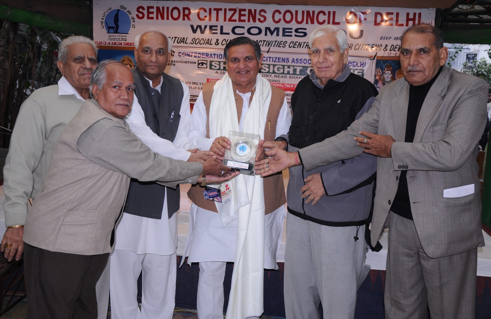 Recently, Senior Citizens Council of Delhi, in association with Confederation of Senior Citizens Associations of Delhi organized free eye check up camp at Deer Park, Safdarjung Encalve which was inaugurated by Dr. Yoganand Shastri, Speaker, Delhi Vidhan Sabha.On the occasion Dr.Shastri said that such eye camps should be organized regularly to help senior citizens. He also appreciated the work being done for the cause and care of elderly by the Council/Confederation for the last so many years. Dr. Sameer Sood from Sharp Sight Center gave a talk on “How eyes could be cared” and gave many tips to the audience. He also suggested that senior citizens should get their eye checked regularly, particularly, at the age of 70 and above.Shri P. Kamraj, Joint Police Commissioner, also addressed the senior citizens and delivered a talk on “How senior citizens should take precautions for the safety and security of their life and property as far as Delhi Police is concerned”. He also told the audience that a Delhi Police Helpline no. 1291 is available for senior citizens for any assistance/redressal for their grievances. He further requested lonely senior citizens to approach Delhi Police for their registration so that they can be regularly visited by Beat Constables in their respective areas.