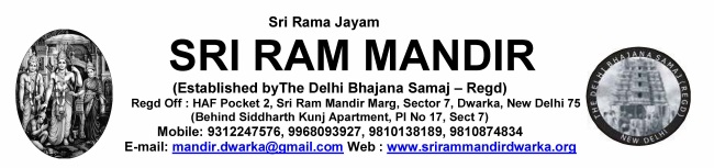 It is to inform devotees / friends about the availability of hall in the 1st floor of Sri Ram Mandir, Dwarka, New Delhi, for conducting household religious programmes.