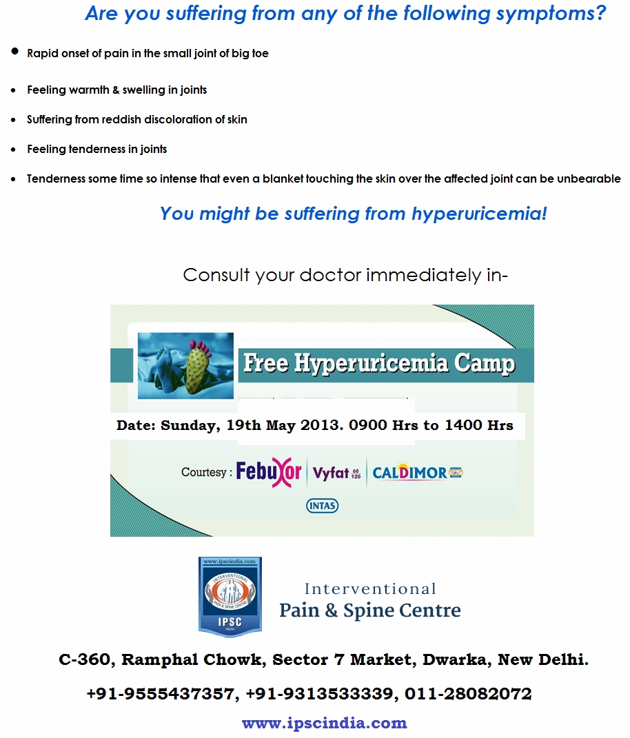 Free Hyperuricemial Camp on 19th May at IPSC India