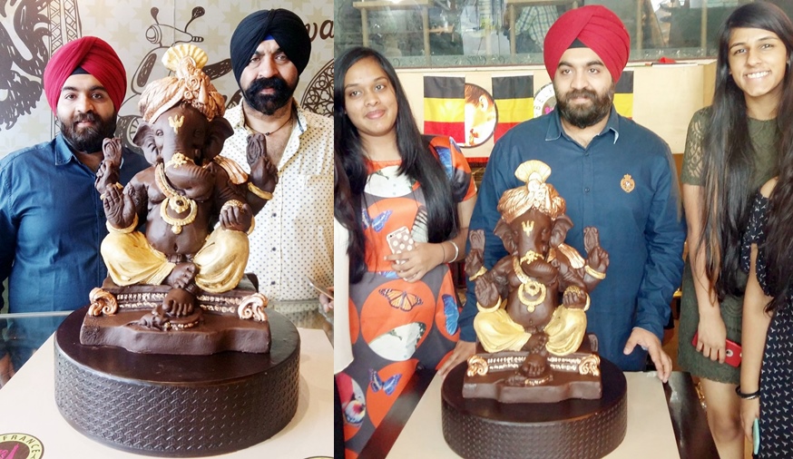 However, taking a break from this traditional manner of celebrating Ganesha Chaturthi, a bakery shop owner, Harjinder Singh Kukreja, hit upon a novel idea and has crafted a 40 kg Belgian Chocolate Ganesha at his shop located at Ludhiana. This chocolate Ganesha idol has been made with the noble aim and purpose to feed the kids from the poor families in the form of delicious chocolate milk. They intend to immerse this eco-friendly Ganesha idol in milk and then feed the chocolate milkshake to the needy children. It took them a complete one week to prepare this three feet Ganesha idol.