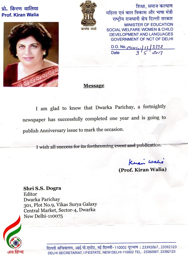 Good wishes for anniversary issue of Dwarka Parichay newspaper