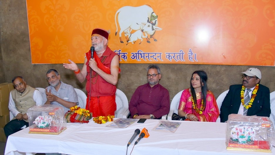 Godham, Shri SP Gupta, IAS (Retired) and his wife Smt. Shashi Gupta. While thanking for the invitation in the program, he expressed his views, he said that he himself is a sevak of Gaumata and told that the human beings can overcome all diseases by using Gaumutra.