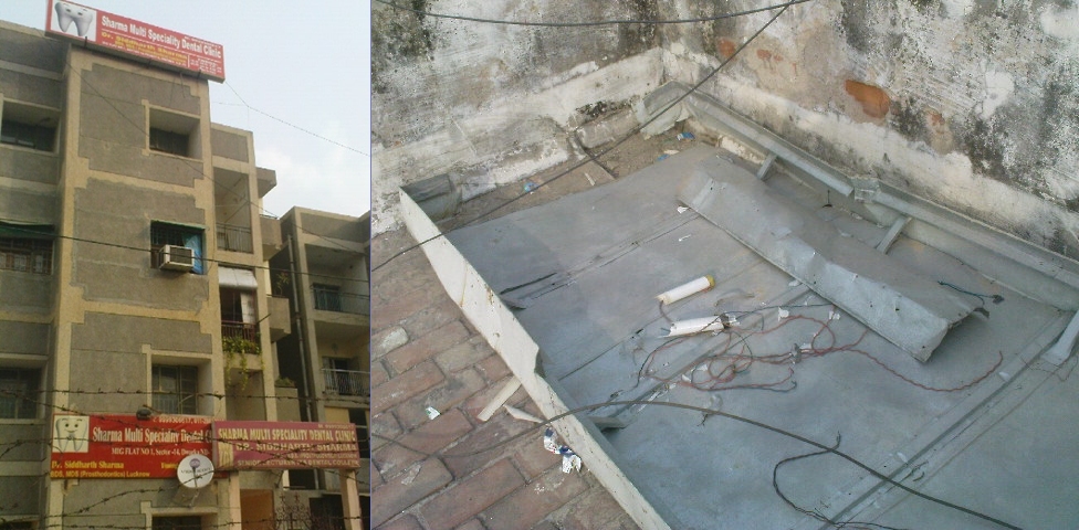 This is to inform you about the regular problem that I am facing at my resident in Sector-14, Kautilya Apartment, and Dwarka from the Flat no.01 Dentist who runs his clinic here. I stay in Flat no 10 at the top floor. The doctor has put the advertisement board on my terrace all around. He has not only damage my terrace wall but kept lot of broken tubes, rods, iron broken board. I have a water drainage problem in rainy seasons due to which i changed my internal house wiring thrice.