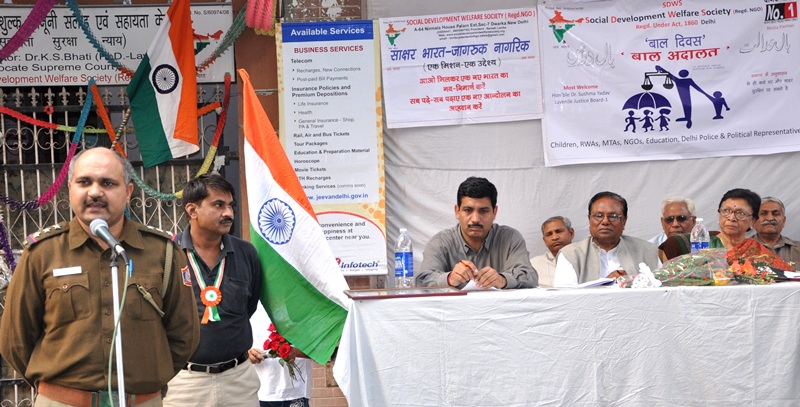 सस्था द्वारा बाल दिवस केअवसर पर दैनिक जागरण की मिडिया पार्टनरशिप में बाल अदालत का आयोजन किया गया। जिसमें ज्युवेनाईल जस्टीस र्बोड-1 से माननीया डा0 सुषमा यादव जी ने बच्चों की बात सुनी। कार्यक्रम में बच्चों ने अपनी बात रखते हुए कहा। स्कूलो की छुट्टी के समय रेड-लाईटो पर पुलिस की नियुक्ति, स्कूल के समय पुलिस पैट्रोलिंग, जेबरा क्रांसिग खाली न रहना, स्कूलो के आस-पास गंदगी, कालोनियों में खेलने का स्थान न होना, जे.जे. कालोनी में शराबीयों की भरमार,
