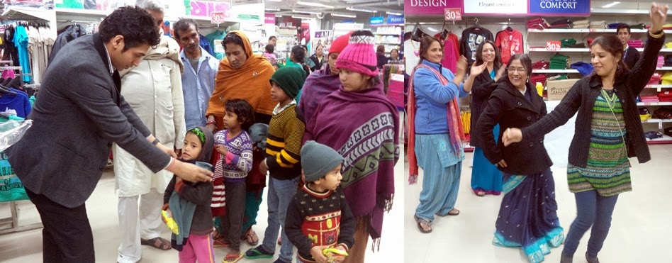 Mr. Pradeep Rana-Manager of Vishal Mega Mart, Dwarka along with Mr.Joginder Mor –social worker handed over the woolen clothes to the poor people.