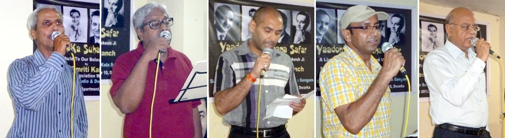 Mr.Pradeep Sharma -Founder President of Mukesh Smriti Kala Manch informed Dwarka Parichay that more than a hundred music lovers attended this musical evening. The ever green old melodious songs of Mukesh were sang mainly by Col. R.R.Aneja, P.S.Dhunta, Jaya Lakshmi, Paramjit Singh Bedi, Advocate Sehrawat, Sanjay Gautam, Kamal, Sonu, Sailesh, K. Venkatraman. Above all Garvit Sharma-IX class student impressed everybody present in the colorful evening with his sweet voice. Even Journalist S.S.Dogra, Anurag Ranjan Singh, Akhilesh Pandey paid tribute to Mukesh with their songs. Pradeep Sharma nicely compered the whole event.