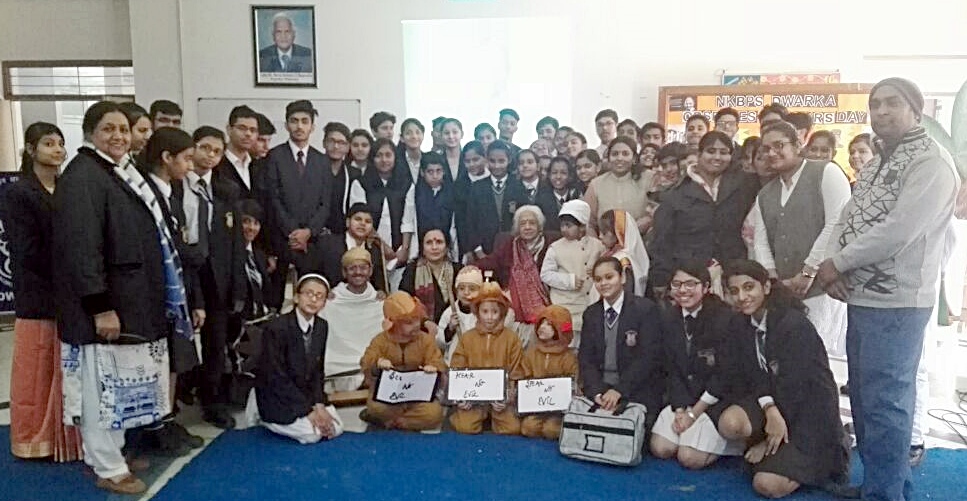 N.K. BAGRODIA PUBLIC SCHOOL, DWARKA, observed Martyr’s Day on 30th January 2017 which marked the humble tribute to our beloved Father of nation, Mohandas Karamchand Gandhi and all the martyrs’ who laid their lives for our nation. The school principal Dr. (Mrs.) Rajee N. Kumar and the headmistress, Ms.satinder kaur warmly received the Honorable chief guest, Dr. (Mrs.) Aparna Basu, chairperson of the National Gandhi Museum, Rajghat, New Delhi and of All India Committee for the eradication of illiteracy of women, which was then followed by lighting of the lamp by the chief guest which was enlightened by the Welcome song sung by the students of the school.