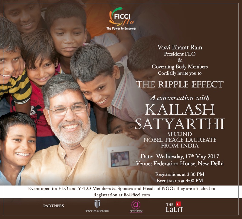 “As a part of its activities, FLO brings together achievers from various arenas for interactive sessions on breaking through challenges and innovating change to achieve success. Nobel Peace Prize winner Kailash Satyarthi has been at the forefront of the global movement to end child slavery and exploitative child labour since 1980. Child labour is a human rights issue that has staggering effects on poverty, illiteracy and humanity. Mr Satyarthi and the grassroots movement founded by him, Bachpan Bachao Andolan (Save the Childhood Movement), have liberated more than 84,000 children from exploitation and developed a successful model for their education and rehabilitation.” Said Ms Bharat Ram.