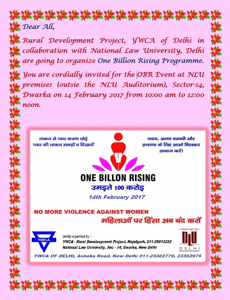 Vocational students will perform OBR song with dance to prove ONE BILLION RISING REVOLUTION: SOLIDARITY AGAINST THE EXPLOITATION OF WOMEN, and Nukkad Natak “Mahilao ka Sangharsh”, and National Law University students will perform to show their solidarity.