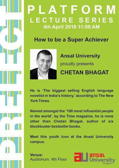 Platform Lecture Series at Ansal University :speaker – Chetan Bhagat, Renowned Writer & Motivational Speaker