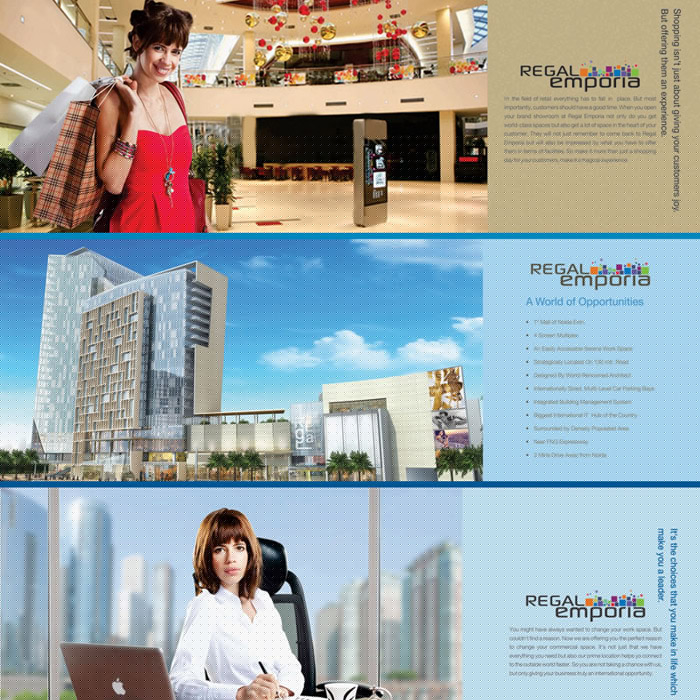 Regal Emporia is first mall of Greater Noida( West) Noida Extension. We have conceptualised development of the Regal Emporia Project to provide an ultra modern integrated development with all the amenities and esthetics of international standards.Ideally suited to house corporates, multinational companies, mid size entrepreneurs and professionals. The concept provides open markets, small haat shops, office space, multiplex, food court, banquet hall, gymnasium etc