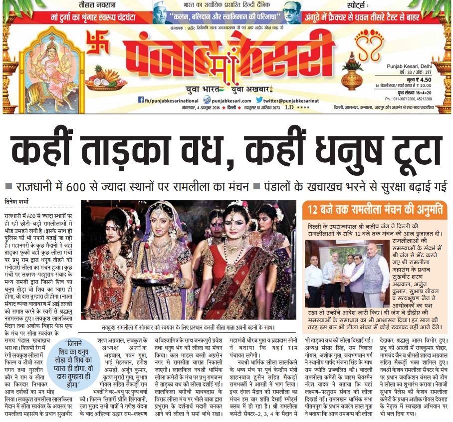 Ramlila Dwarka Sector-10- coverage in Panjab Kesari