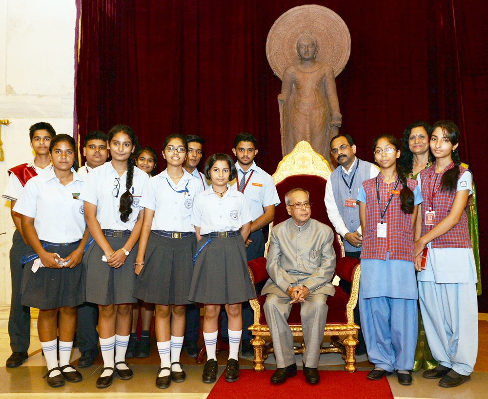 A group from R.D. Rajpal School, Dwarka comprising of school Principal, Mrs. Alka Kshatriya along with four students got the opportunity to celebrate Raksha Bandhan at the Rashtrapati Bhavan. The students were very excited to meet our honourable President Mr. Pranab Mukherjee. It was a memorable experience for all the students as they were taken for a round of Mughal Garden and the Museum at Rashtrapati Bhavan. Everyone was seated in Darbar Hall, the splendour and grandeur of the place mesmerized and captivated the hearts of all. Mrs. Sharmistha Mukherjee, also escorted our honourable President and the students were greatly impressed by the simplicity and humility of the great personality.