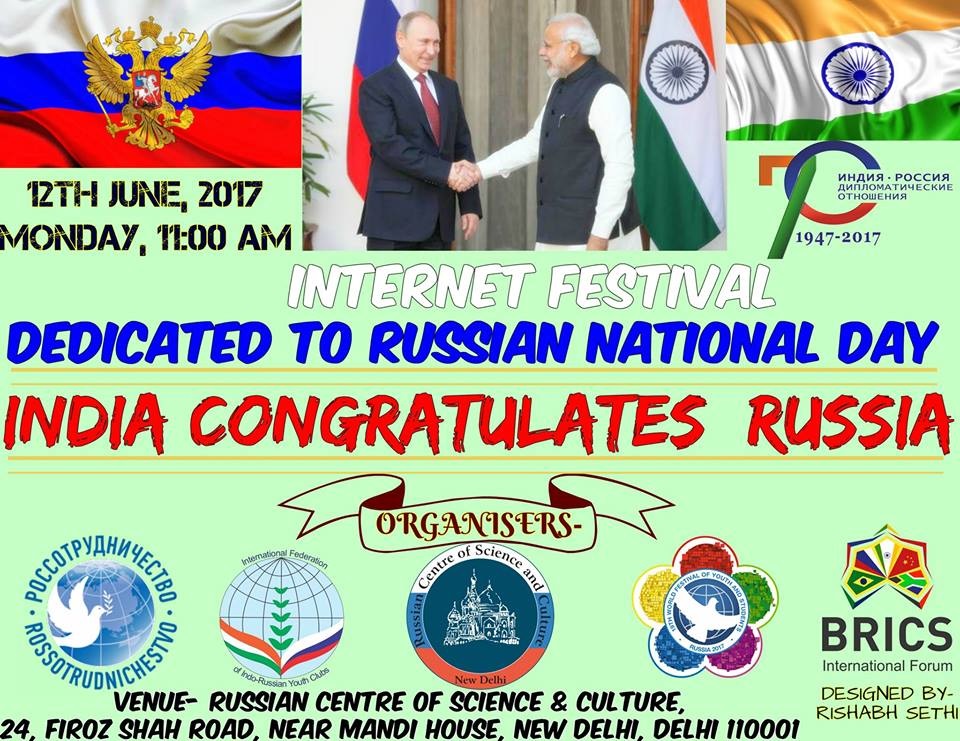 HomeUpdateRussian National Day Celebration at Russian Culture Centre Russian National Day Celebration at Russian Culture Centre DwarkaParichay.com June 10, 2017 Update Related Posts We need to make our society a better place to dwell-Shobhit Chauhan Holi Milan by Dwarka Chitragupta Samaj Putra Kameshti Mahayagyam at Dwarka State Award to Mrs. Nita Arora, Principal of Sri VIS, Dwarka ‘दंगल’से मल्लिका आउट DMA Dwarka Onam Programme on 21st Sept 2014 A Life Skills Program for your children (Ages 3 months to 12 years ) भाविप द्वारा सेवा भारती केंद्र के बच्चों को गर्म कपड़ों का वितरण राष्ट्रपति डॉ. सर्वपल्ली राधाकृष्णन की 130वीं जयंती की पूर्व संध्या पर हंसराज कॉलेज में आयोजित भव्य शिक्षक दिवस समारोह में शिक्षाविदों को 33वें डॉ. एस राधाकृष्णन स्मृति राष्ट्रीय शिक्षक से नवाजा गयाः दयानंद वत्स Urgent appeal for Rahat Floods समर्पण एन जी ओ ने बस्ती के बच्चों के साथ मनाया बाल दिवस DDA WILL RECOVER LOSS CAUSED ON ACCOUNT OF CARELESS STAFF Madhuri is my favourite Heroine.Says Annie श्रेष्ठतम दान है रक्तदान: राजकुमार जैन ENCOURAGING WOMEN ENTREPRENEURS COULD BE THE KEY TO SPURRING INDIA’S ECONOMY ONWARD Vegetarian diet reduces BP शिक्षक दिवस पर गुरूजनों को नमन और आपको हार्दिक शुभकामनाएं Mythology and The Science of Pregnancy दीपावली पर करें सामाजिक बुराइयों पर करारा प्रहार : श्री राजकुमार जैन Importance of Online Teaching ( #Lockdown Series)- A.S. Chhatwal