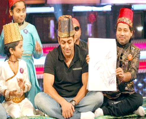 It was endearing to see Salman join Azmat on stage for his performance on the Sufi number, Khwaja Mere Khwaja from the movie Jodha Akbar. The mentors Kailash Kher, Javed Ali and Adnan Sami accompanied Salman and Azmat on stage, sat down cross legged, donned the embroidered headgear worn by Sufi singers and gave a mesmerizing performance.