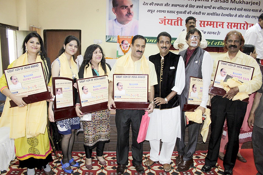 Pratima Raksha Samman Samiti organised GREAT ICON OF INDIA AWARD 2015 at Karnal, Haryana which was dedicated to Saheed Dr. Shyama Prasad Mukherjee and was organised on 6th july 2015 the date which Dr. Shayama was born. In this Mr. Narender Arora (President of the association) selected the person which has given outstanding performance to the nation.