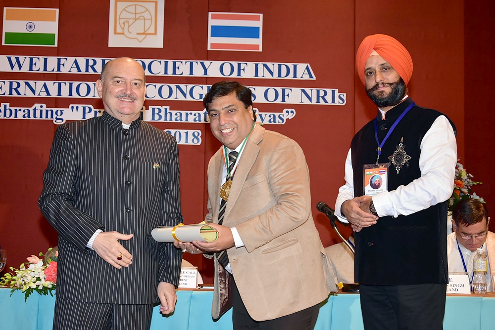 Sh. V.P. Tandon, Chairman, Kamal and Vandana Group of Institutions being honoured with ‘Hind Rattan Award’ by Hon’ble Ambassador Phillippe Le Gall, High Commissioner of Seychelles to India and Non Resident Ambassador to Thailand for his outstanding contribution in the field of Education and Social work at Bangkok, Thailand on the auspicious occasion of ‘Pravasi Bhartiya Divass’.