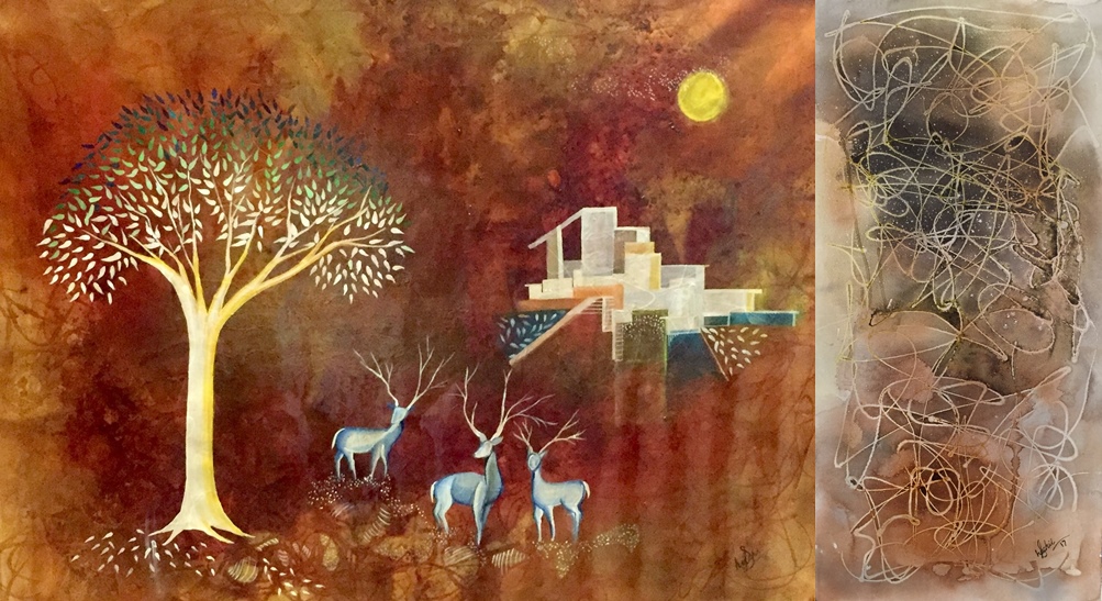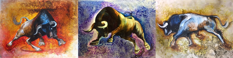 Talking about her paintings, she said the “Dream Scape Series” are neither land nor city scape. They represent the positive subconscious spaces which a person deserves to be in, as happy surroundings. “The Bull Series” of paintings reflect the quality of inner strength and power as bulls are a symbol of prosperity and growth.” Shuchi’s works engage the curiosity of the viewer. Layering being her strong point she shows deep understanding of colours and comfort with the large as well as small spaces.