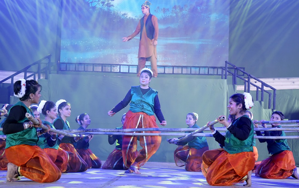 The lamp lighting was followed by the invocation dance to seek divine blessing of Maa Saraswati, Maa Durga, Maa Lakashmi and Maa Kali –incarnates of the Shakti. In the felicitation ceremony of classes VI-XII, the students who had excelled through their multifaceted talent and who had proved their mettle in the field of academics were awarded merit certificates and cash prizes. The sportsperson who had made a mark at the National Level were also given due cognizance along with students who outshined in the co-curricular arena.