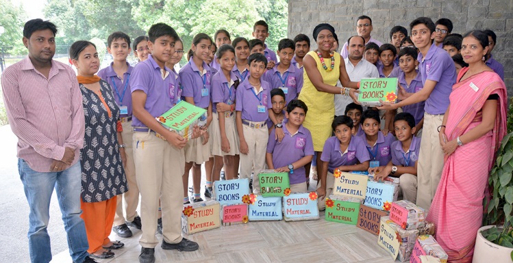 On 28th August 2015, class 8 students of J M International School visited the High commission of Ghana to donate story books and study material for children of Ghana. They were welcomed with open arms at the embassy. First they met Mrs. Plahar- Aryee who took them to the conference hall. Soon High Commissioner GHANA Samuel panyin yalley arrived. He interacted and introduced with every student followed by eulogizing words for Indian students and specially J M International School principal for the brilliant idea which made the students empathized and motivated them to help Ghana children by contributing their own story books and study material, which would surely strengthen the relationship with international Community. Students quenched their thirst by asking interesting questions which were answered by Mrs. Jennifer Lartey Minister/ Head of Chancery. She shed light on the life of a diplomat, her experience in India and the life in Ghana. She liked the Indian dress saree the most and culture of touching elder’s feet for respect. At the end she spoke about how education and good friends help in one’s life followed by Indian National Anthem.