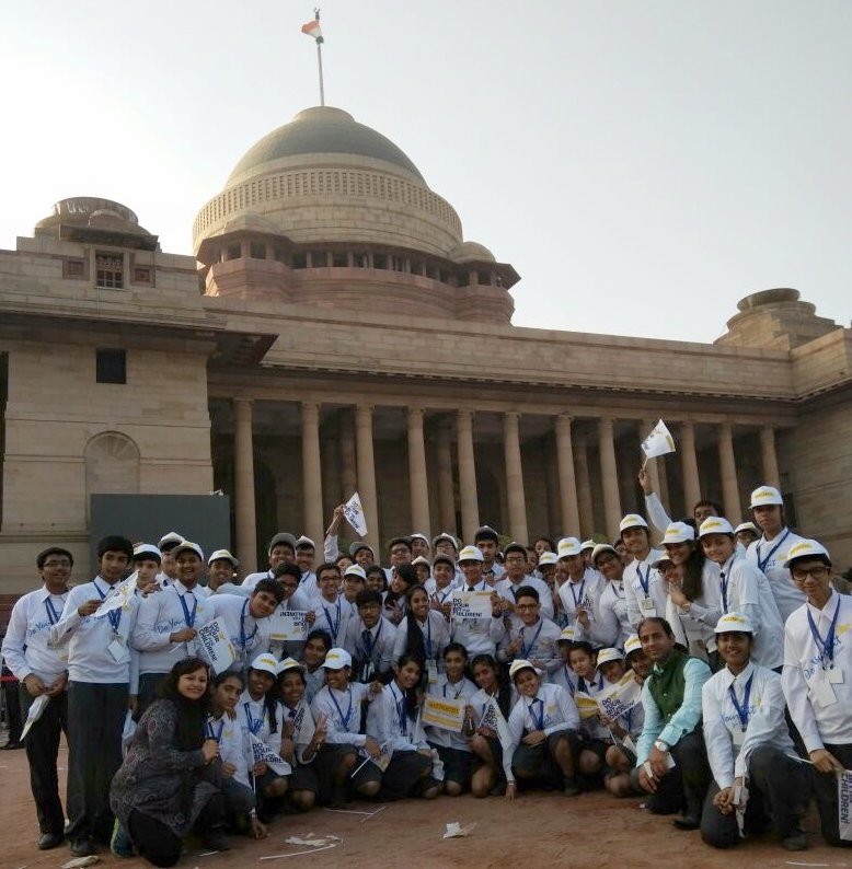 The students of class IX-X took part in the launch campaign organised by the famous Nobel laureate Mr Kailash Satyarthi “100 Million for 100 Million “on December 11,2016 @ the Rashtrapati Bhawan on the eve of the 81st Birthday of the Hourable President Mr Pranav Mukherjee.Around 7000 students from selected 50 Schools of Delhi NCR took part in this mega event. The students took pledge to be the part of the campaign by checking the problems of Child Abuse and Child Labour in the society.