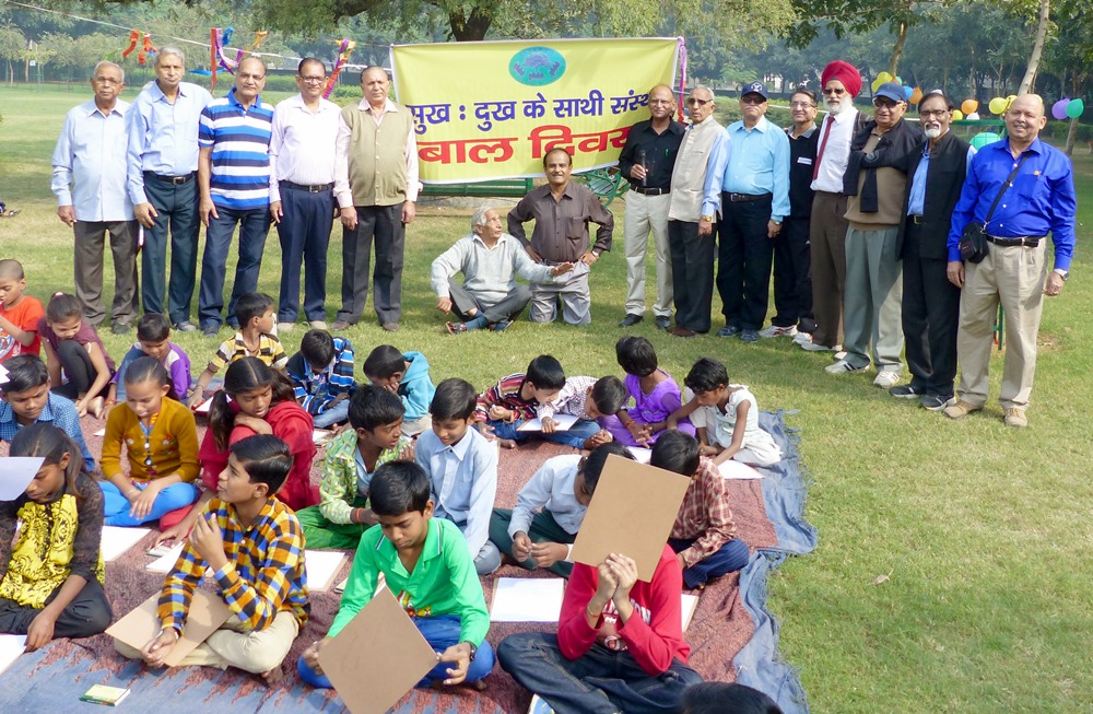 Sixty two children of the age between five to fifteen years participated in painting competition and sports events of different level organized by the association on this occasion. The celebration was full of enthusiasm. Shri Shashi Kant Kapoor, President SDKS, coordinated and managed the whole show. He was of the opinion that “such programmes are a big tool to generate a sense of confidence in the children of under-privileged class of the society and to have faith in others. On the other hand it helps in developing a sense of responsibility and brotherhood in better placed children”. “Sukh Dukh Ke Saathi Sanstha keeps organizing such programmes, very often”, said Capt S.S. Mann, Vice Presedent of the Sanstha. “We remain in close touch with the workers of Horticulture and Sanitation departments etc and work with them shoulder to shoulder to keep our area clean and green. Involvement of their children in such programmes brings us closer and motivate them to work harder”, he further said.