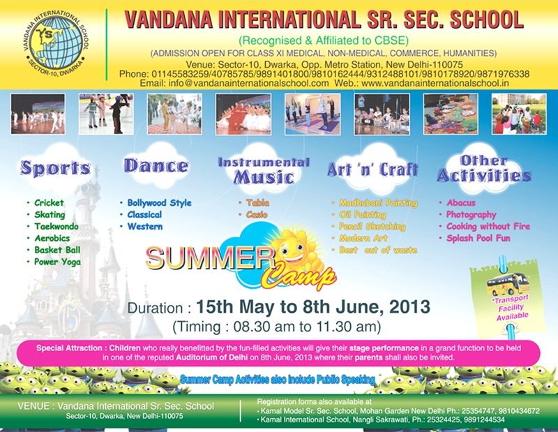 Summer camp at Vandana International School Dwarka