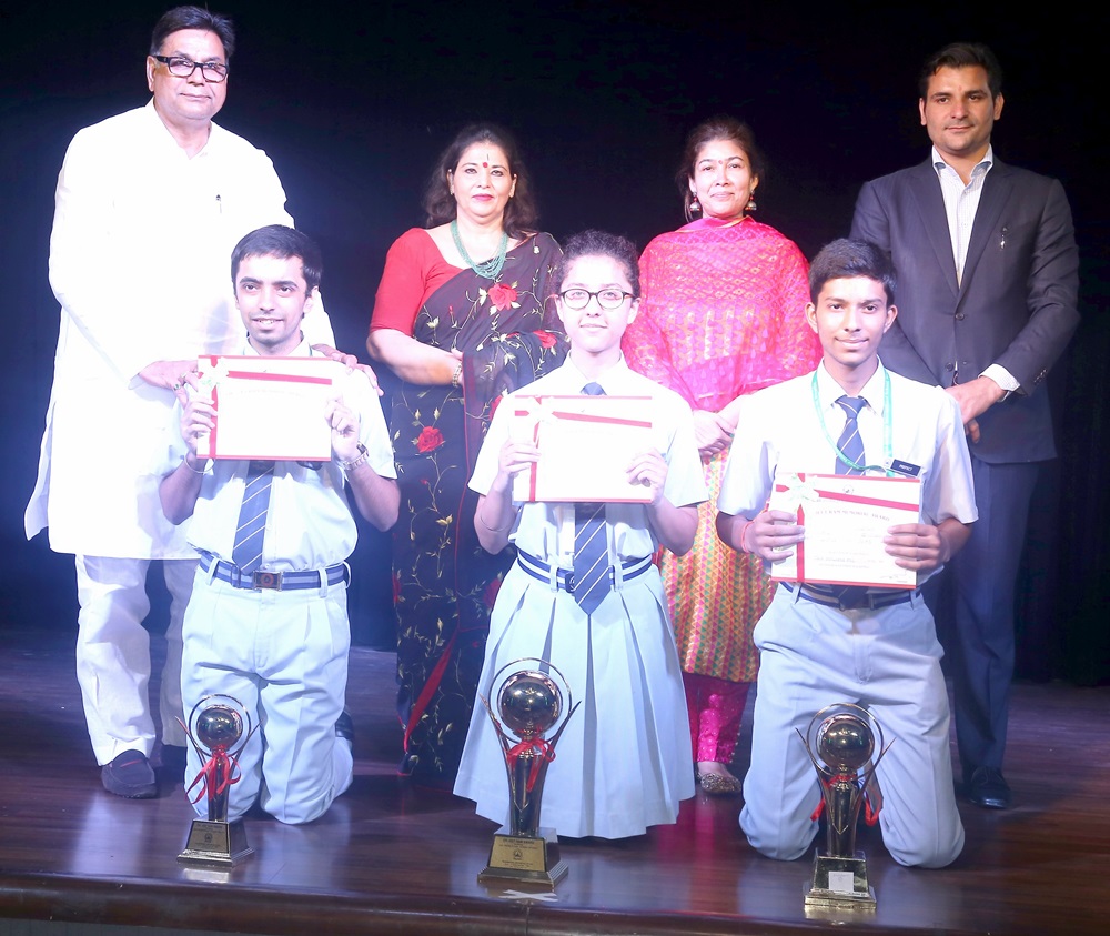 The function commenced with the auspicious lamp lighting ceremony to the harmonious accompaniment of shlokas. The Chief Guest was accorded a floral welcome by the honourable school Director, Ms. Mrinalini Kaura. The Director then addressed the august gathering and apprised them of the outstanding result of class XII in the CBSE exams. This was followed by an impressive Nukkad Natak and celebration dance by the students which set the mood for the morning.