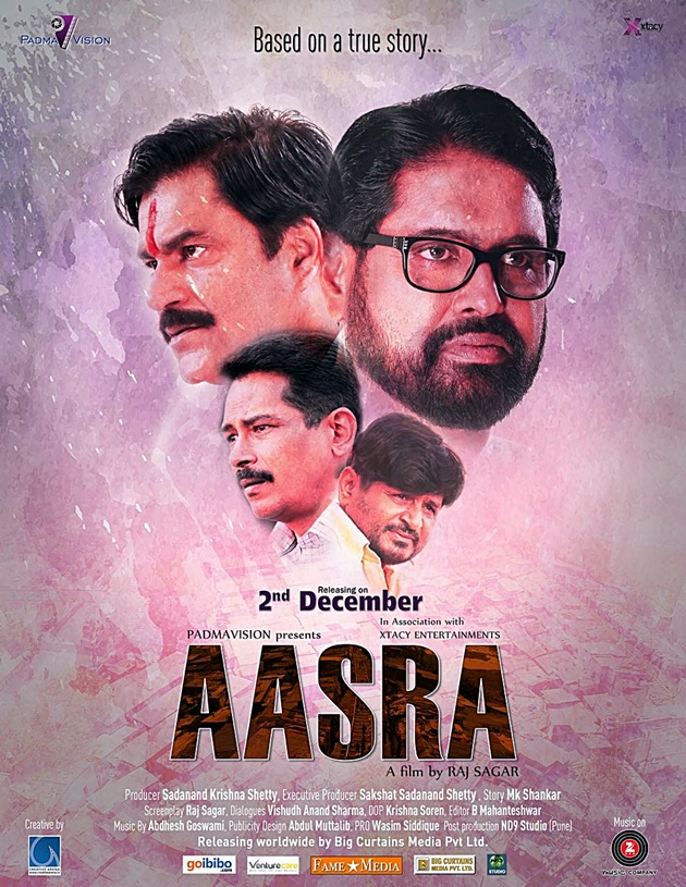 Film AASRA, produced by Sadanand Krishna Shetty, executive producer Sakshat Sadanand Shetty under the banner of ‘Padmavision’, screenplay & direction by Raj Sagar, story by MK Shankar, dialogue by Vishudh Anand Sharma, music by Abdhesh Goswami, singers Raghuveer Yadav, Siddharth Mahadevan, Abhijeet Kaushambi, Anushka Chadhha & Abdhesh Goswami, DOP Krishna Soren, editing by B Mahanteshwar and post production at ND9 Studio.