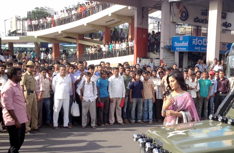Around 20, 000 fans of Veena Mallik came to have a look of her which created a Traffic Jam in Banglore City. When the situation got out of control, the producer called the Police to handle the fans.