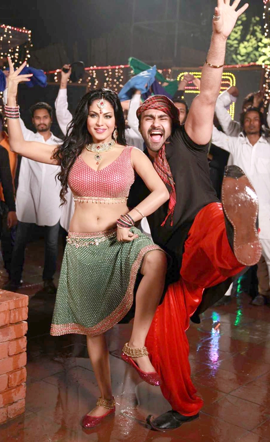 Veena doles out thumkas and happily heaves her glow in the dark bosom as her co-dancers look on with lecherous delight. The raunchy item song sung by Bollywood singer Sunidhi Chauhan.