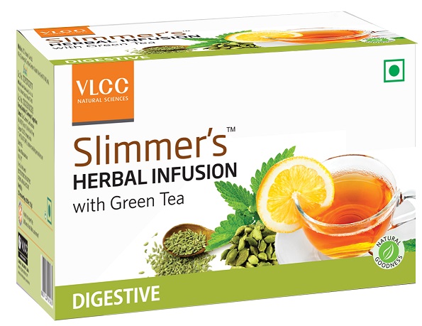 वीएलसीसी ने स्लिमर्स डाइजेस्टिव ग्रीन टी बाजार में उतारा से जो स्वास्थ्य के लिए बेहतर है। यह एक हर्बल मेल है जिसमें जड़ी बूटियों का एक खास मिश्रण है। वीएलसीसी स्लिमर्स हर्बल इंफ्यूजन डायजेस्टिव ग्रीन टी में गोलमिर्च, मीठे सौंफ की फूल, इलायची, पिप्पली, दालचीनी ,अनार चूर्ण का मिश्रण है, ग्रीन टी में एंटीऑक्सीडेंट और फ्री रैडिकल स्कैवेनजिंग गुण मिलेंगे। इसके बारे में जाना जाता है कि यह वजन कम करने में सहायता करता है। इसके कुछ लाभ का उल्लेख करना हो तो इससे कैंसर का जोखिम कम होता है, हड्डियां मजबूत होती हैं और दिमाग बेहतर होता है।